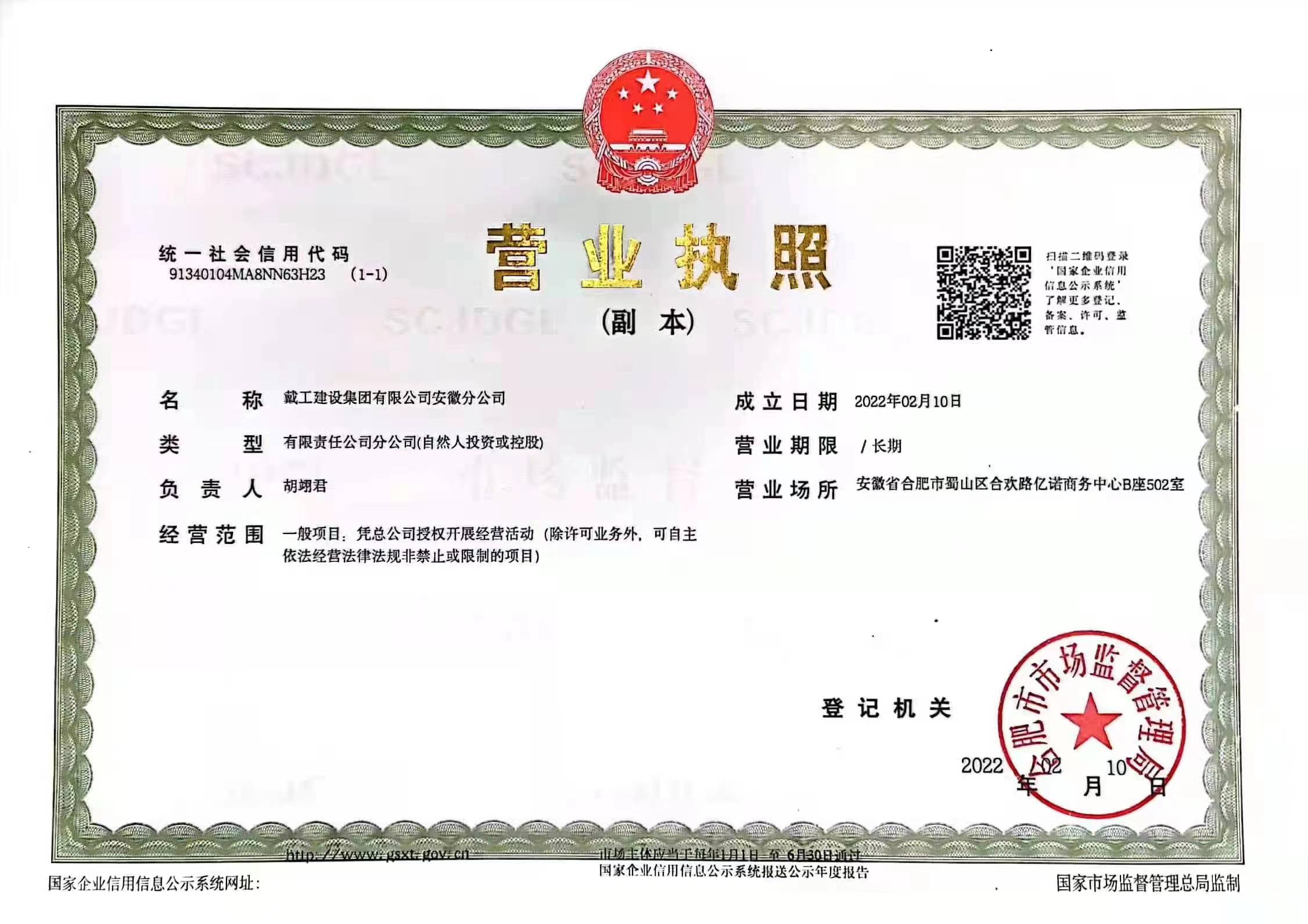 戴工建設集團有限公司,創建于2009年,注冊資本9888萬元人民幣。公司位于北京市大興區。具有建委頒發的建筑裝飾裝修專業壹級,防水保溫工程專業壹級,建筑幕墻專業貳級,消防設施專業貳級,電子與智能化專業貳級,特種工程(結構補強)專業不分等級,建筑機電安裝專業貳級,環保工程專業貳級,鋼結構專業貳級,建筑工程總承包貳級,建筑裝飾工程設計專項甲級,展覽陳列工程設計與施工壹級,展覽展示工程壹級...更多>>